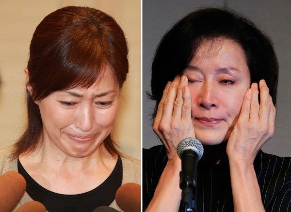 高島礼子(左)も高畑淳子も涙の会見/(C)日刊ゲンダイ