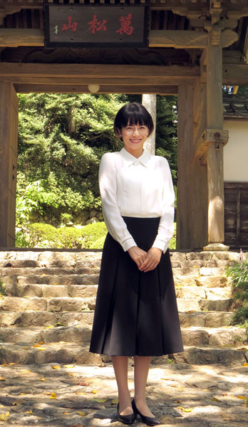 井伊直虎の菩提寺を訪れ笑顔(C)日刊ゲンダイ