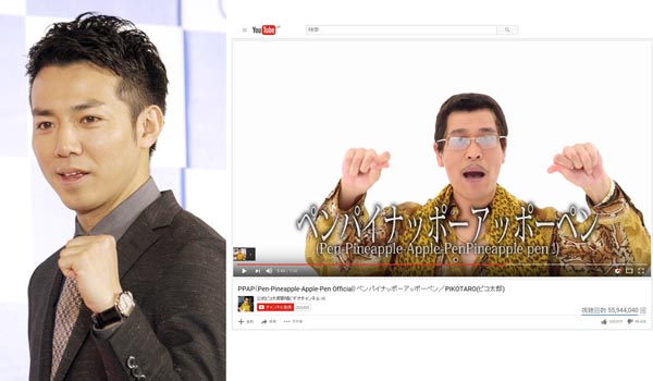 ピース綾部とピコ太郎(ユーチューブから)(C)日刊ゲンダイ