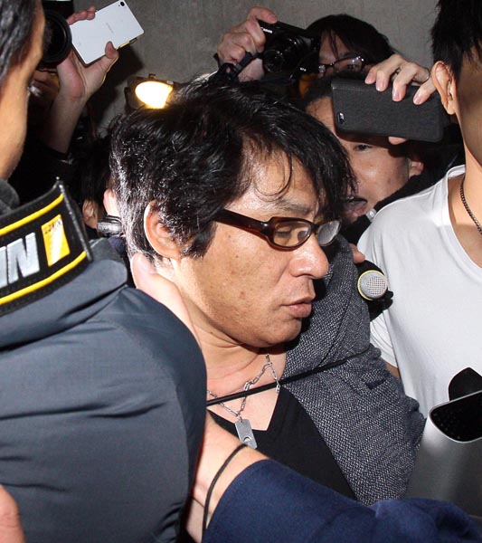 報道陣にもみくちゃにされるASKA(C)日刊ゲンダイ