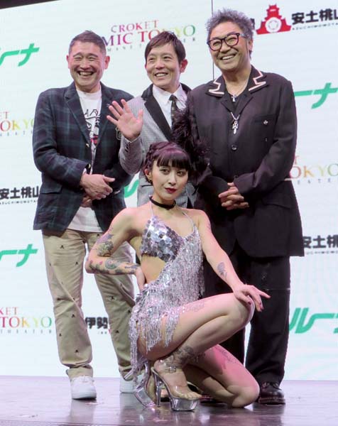 オーデションに参加したお笑いコンビ「XーGAN」(左奥)とMVPに輝いたダンサーのacha(前列)とともに(C)日刊ゲンダイ