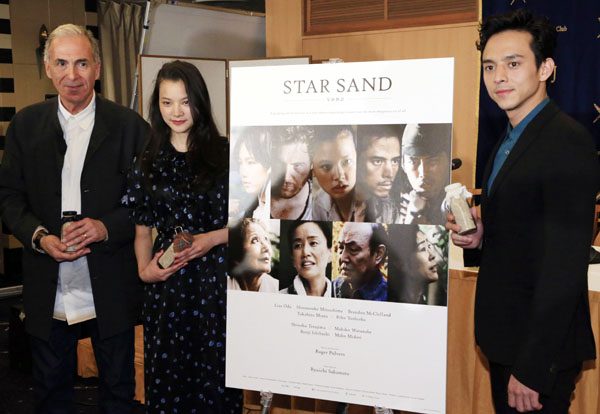 左からロジャー・バース監督、織田梨沙、満島真之介(C)日刊ゲンダイ