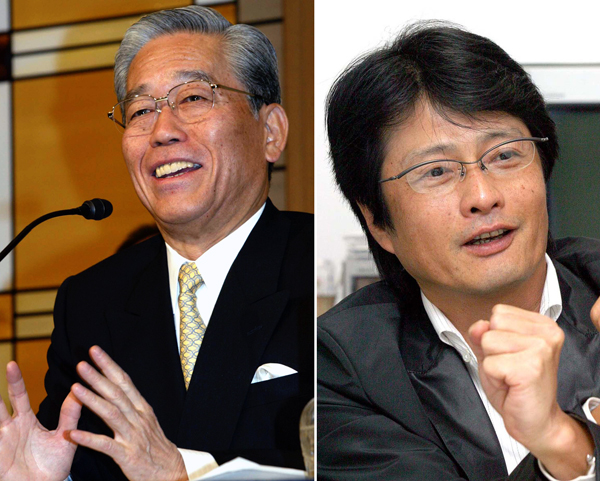 日枝会長(左)の“神の手”があれば…(C)日刊ゲンダイ