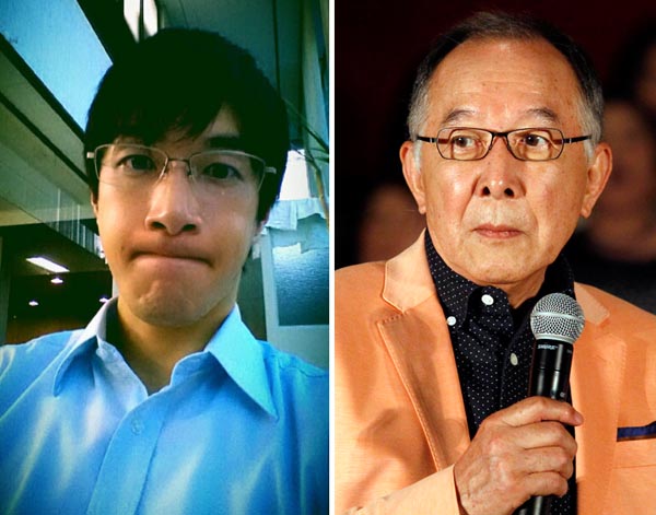 俳優の橋爪功(右)と遼容疑者(本人公式ブログから=現在は閉鎖)