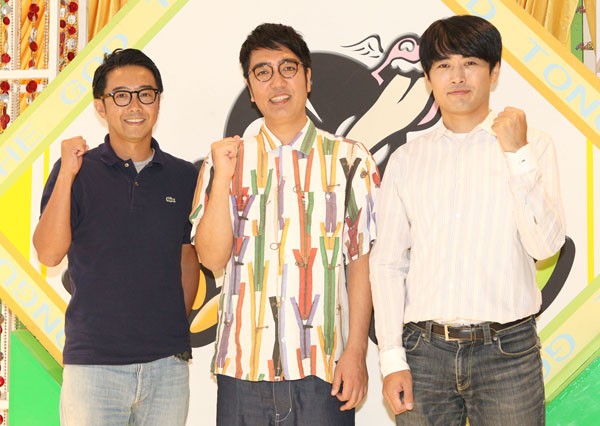 番組レギュラーの劇団ひとり(右)とおぎやはぎ/(C)日刊ゲンダイ