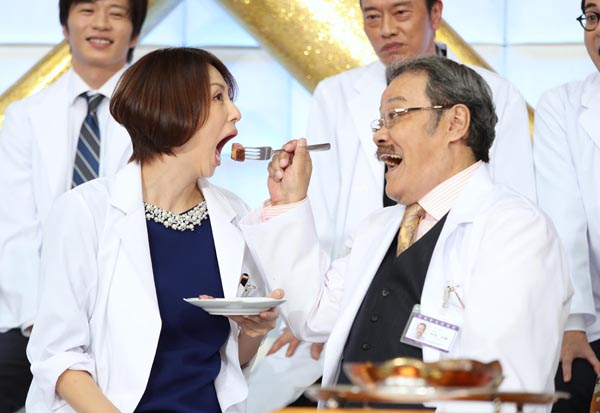 極上ステーキを「あ~ん」(C)日刊ゲンダイ