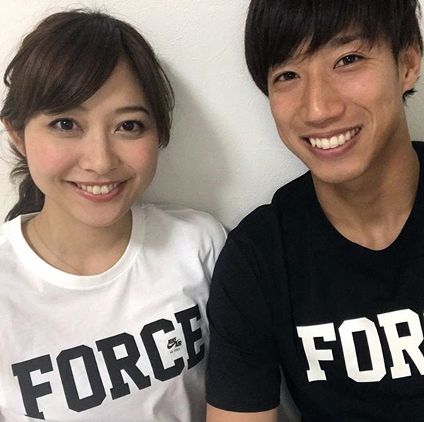 ペアTシャツで結婚報告(久冨アナのフェイスブックから)