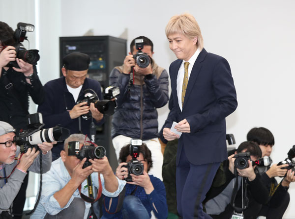 会見で引退を表明した小室哲哉(C)日刊ゲンダイ
