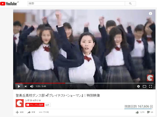 登美丘高校ダンス部×「グレイテスト・ショーマン」(ユーチューブから)