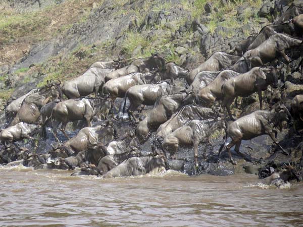 川を渡る数万頭のヌーの群れ(提供写真)