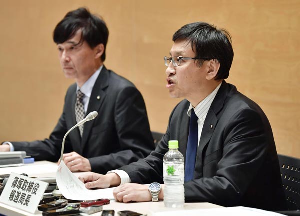 会見を開いたテレ朝の篠塚浩報道局長(右)/(C)共同通信社