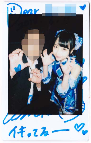生牡蠣いもことチェキを撮影。美人!「私、イキってる(格好つけている)から」と連発していました(提供写真)