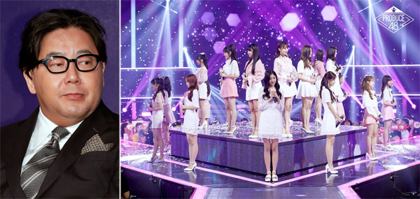 最終選考に挑むメンバー(右)とプロデュースする秋元康氏(PRODUCE48 OFFICIALツイッターから )