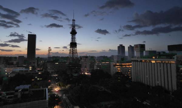 6日未明地震の影響で停電した札幌市内(C)共同通信社