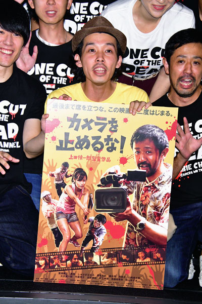 映画「カメラを止めるな!」100万人突破記念舞台挨拶(中央は上田慎一郎監督)/(C)日刊ゲンダイ