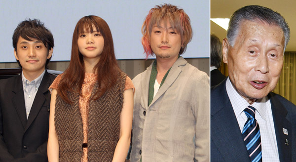 いきものがかりと森喜朗元首相(C)日刊ゲンダイ