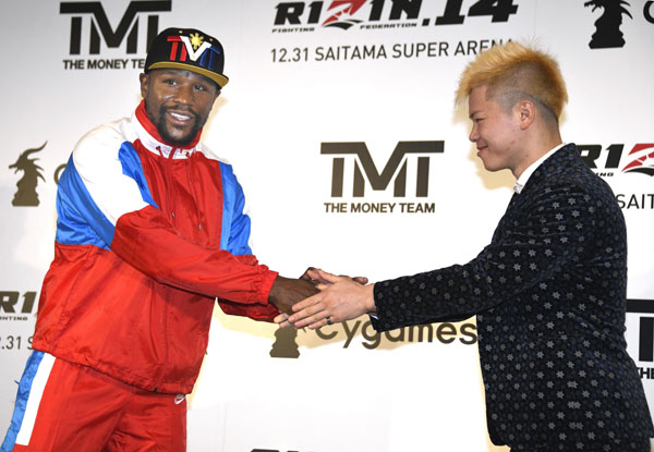 メイウェザーと那須川天心(C)共同通信社