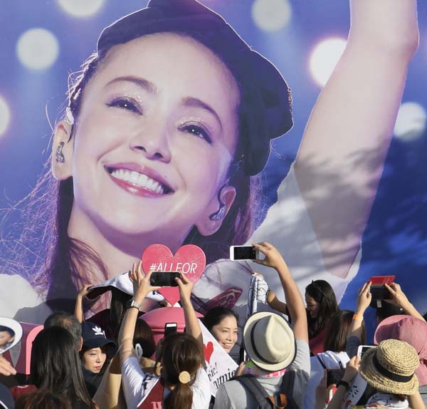 安室奈美恵さんのラッピングを写真に収めるファンら(C)共同通信社
