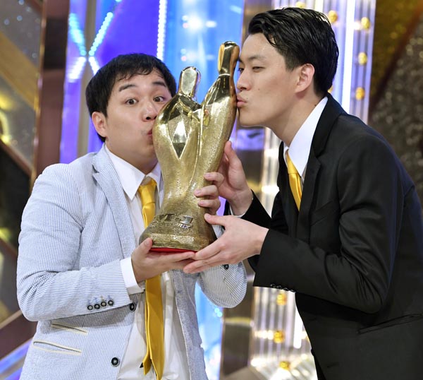 史上最年少で王者に輝いた霜降り明星(C)共同通信社