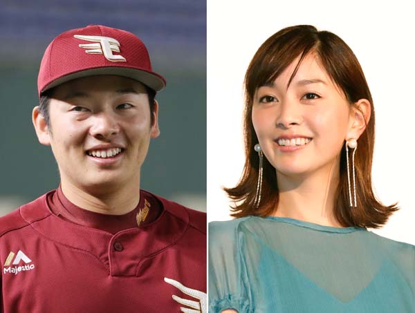 楽天・松井と石橋杏奈(C)日刊ゲンダイ