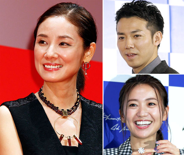 (左から時計回りに)吉田羊、ピースの渡部祐二、元AKBの大島優子(C)日刊ゲンダイ