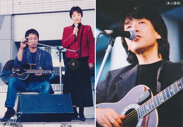 韓国フォーク会巨匠のチョ・ドンジンさん、左は新井英一さんと(提供写真)