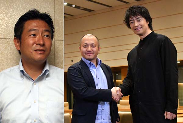 秋元司環境副大臣(左)と白石監督と主演の斎藤工(提供写真)