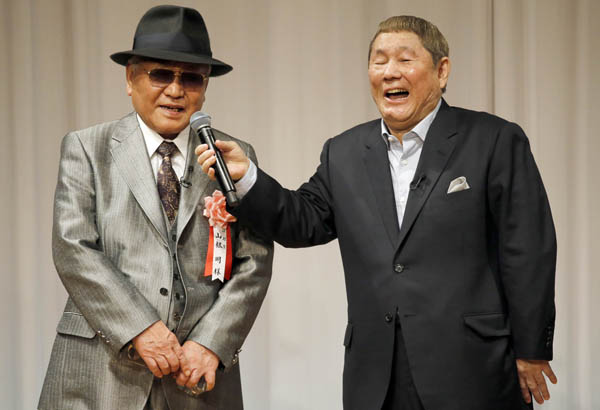 山根明前会長(左)とビートたけし審査委員長/(C)日刊ゲンダイ
