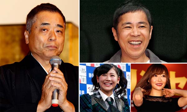 (左から時計回りに)4代目桂小文枝を襲名する桂きん枝、岡村隆史、指原莉乃、西野未姫(C)日刊ゲンダイ