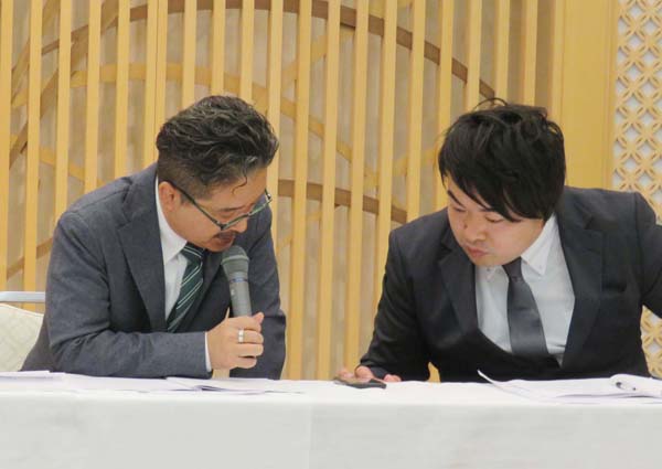 村松匠取締役(左)は会見でしどろもどろに(C)日刊ゲンダイ