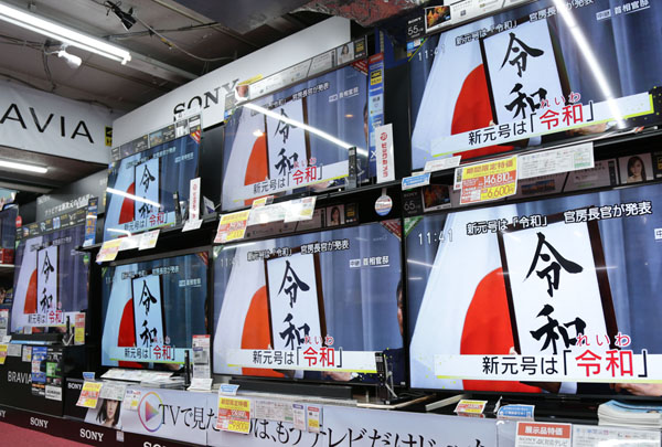 新元号発表を報じるテレビ(C)日刊ゲンダイ