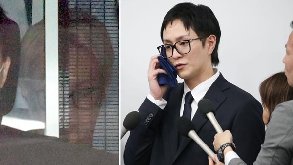 逮捕され送検された浦田容疑者(左)は保釈後、金髪を黒髪に染め直して会見に臨んだ(C)日刊ゲンダイ