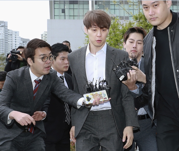韓国の水原地裁に出頭するJYJのパク・ユチョン(C)共同通信社
