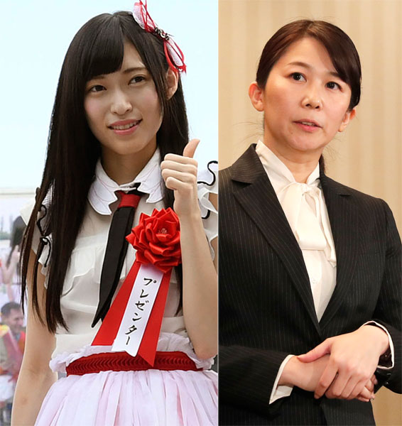 山口真帆(左)とNGT48劇場支配人の早川麻衣子氏(C)日刊ゲンダイ