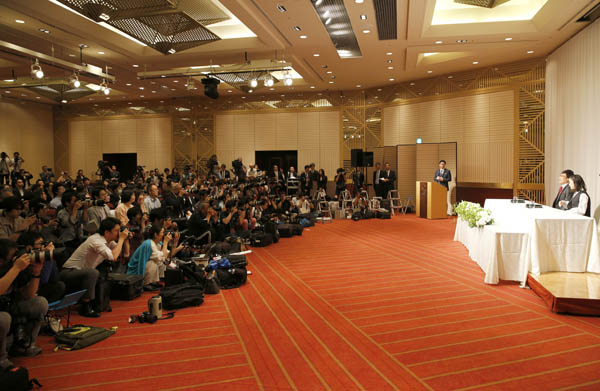 結婚会見会場(C)日刊ゲンダイ