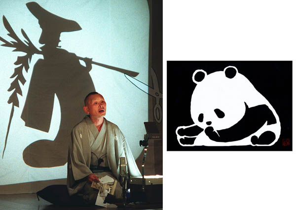 林家正楽(左)と本人作の「紙切り」(C)共同通信社