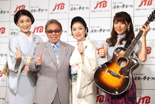 「令和にっぽん!演歌の夢まつり」製作発表会見。左から市川由紀乃、北島三郎、藤あや子、おかゆ(C)日刊ゲンダイ