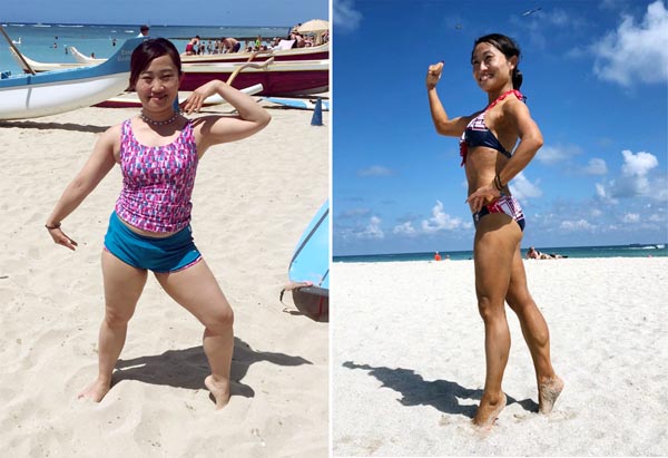 ダイエットのビフォー(59キロ・左)&アフター(42キロ)のキンタロー。さん/(C)松竹芸能