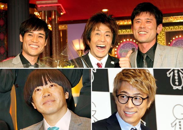 (左上から時計回りに)ネプチューンの名倉潤、堀内健一、原田泰造。ロンドンブーツ1号2号の田村淳、雨上がり決死隊の蛍原徹(C)日刊ゲンダイ