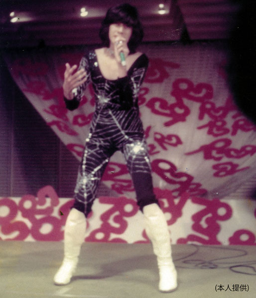テレビ番組「パクパクコンテスト」で、母と作った衣装で、西城秀樹の「ジャガー」をモノマネをする川崎麻世さん(提供写真)