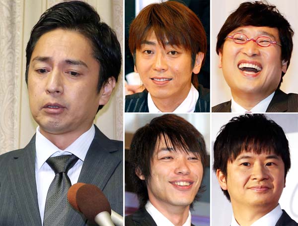 (左から時計回りに)チュートリアルの徳井義実。後藤輝基、山里亮太、若林正恭、川島明(C)日刊ゲンダイ