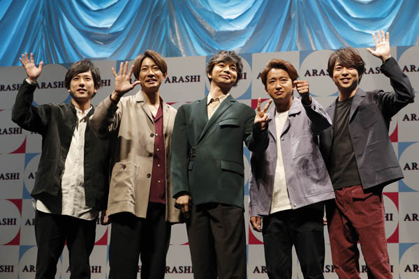 嵐の記者会見。(左から)二宮和也、相葉雅紀、松本潤、大野智、櫻井翔(C)日刊ゲンダイ