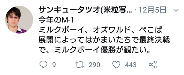 サンキュータツオはなぜミルクボーイ優勝を的中できたのか