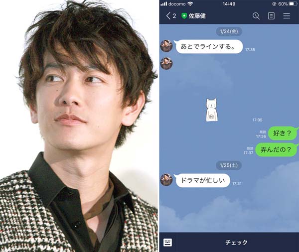 佐藤健(左)と佐藤健のLINE公式アカウント(C)日刊ゲンダイ