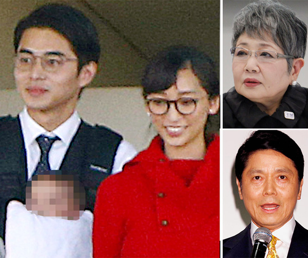 (左から時計回りに)東出昌大&杏夫妻、泉ピン子、峰竜太(C)日刊ゲンダイ