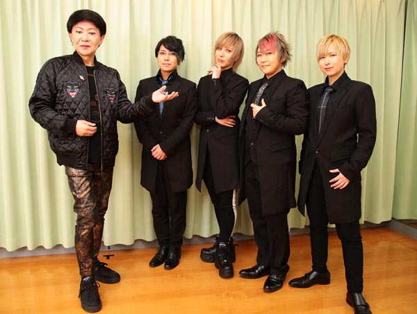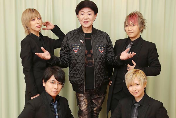 美川憲一とザ・ヴァイパー(左からJIN、HARUTSUKI、YUYA、ICHIRU)/(C)日刊ゲンダイ