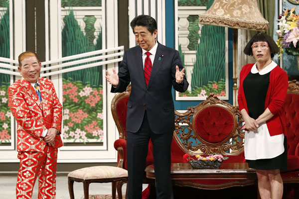 吉本新喜劇の公演にサプライズ出演した安倍首相(C)共同通信社