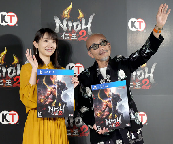 「仁王2」完成発表会に出席した波瑠と竹中直人(C)日刊ゲンダイ