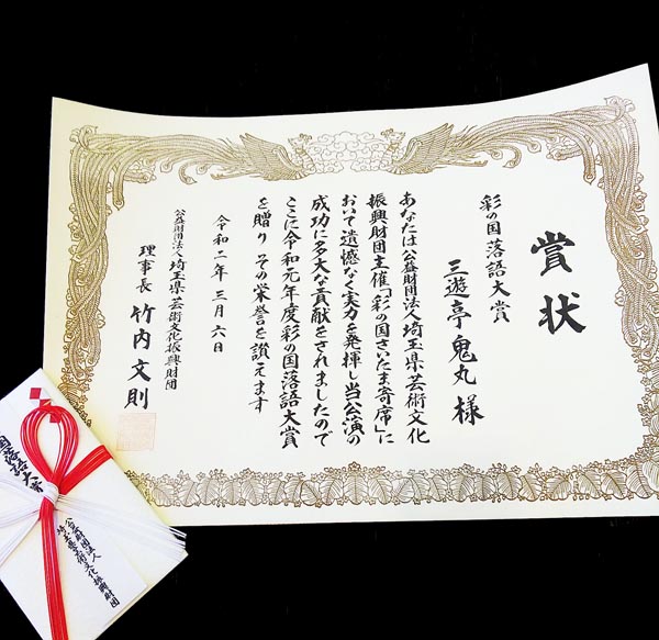 鬼丸がこのたび、令和元年度彩の国落語大賞を受賞しました!(C)日刊ゲンダイ