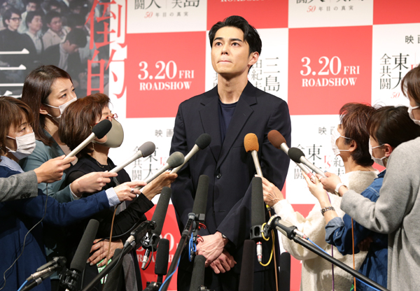 リポーターに囲まれる東出昌大(3月17日)/(C)日刊ゲンダイ